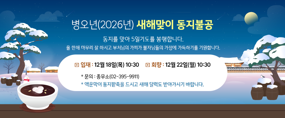 12/21일 동지팥죽 새알만들기 운력 및 12/22일 동지기도 원만히 회향하였습니다.작은설이라 불리는 동지날 모든 분들 가정에 좋은일들 가득하시길 기원합니다.